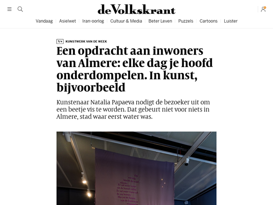 Een opdracht aan inwoners van Almere: elke dag je hoofd onderdompelen. In kunst, bijvoorbeeld | de Volkskrant