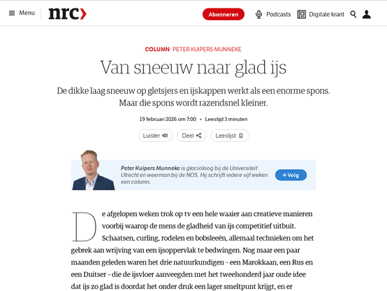Lezenswaardig als altijd. Column Peter Kuipers Munneke | Van sneeuw naar glad ijs - NRC