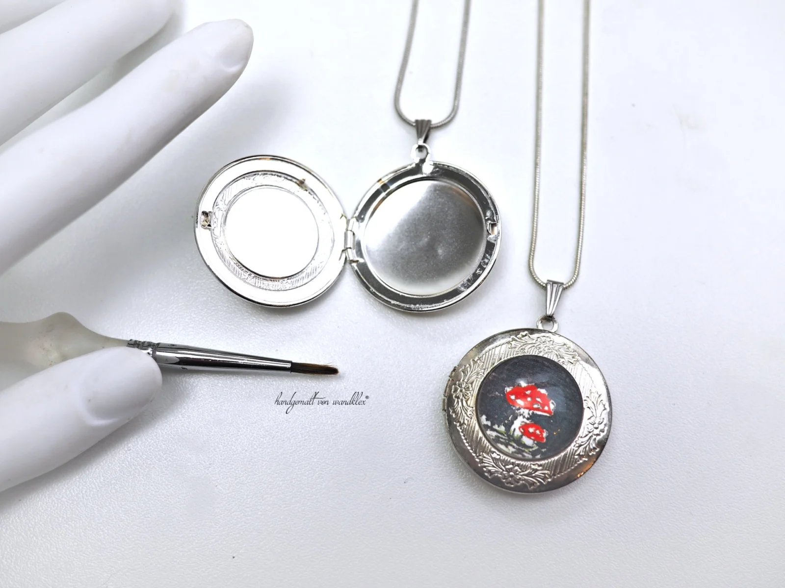 Handgemalter #wandklexschmuck,gefasst in Medaillons (gibts auch in goldfarben) - zu finden auf #art #miniaturepainting #fediArt #mastoArt #creativeToots