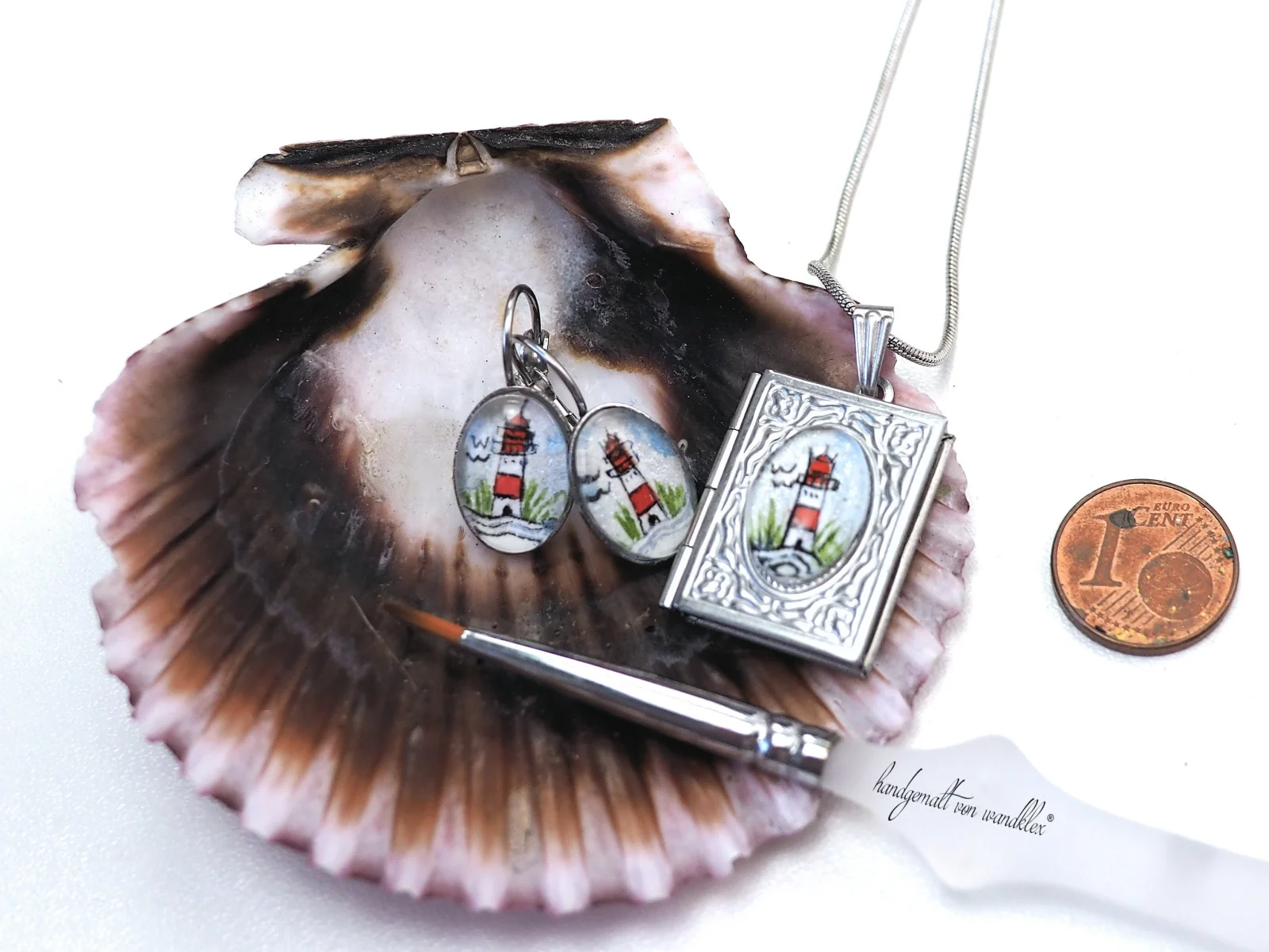 (handgemalter #wandklexschmuck mit winzigen handgemalten 13x18mm-Motiven; zu finden auf #marineLife #lighthouse #miniaturepainting #art #artShop #fediArt #creativeToots #MastoArt