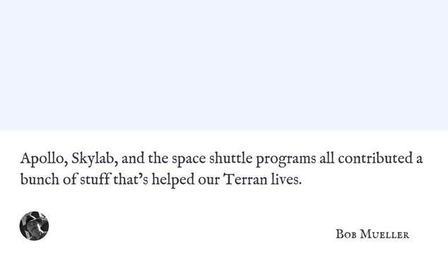 Apollo, Skylab, and the space shuttle programs all contributed a bunch of stuff that’s helped our Terran lives.
