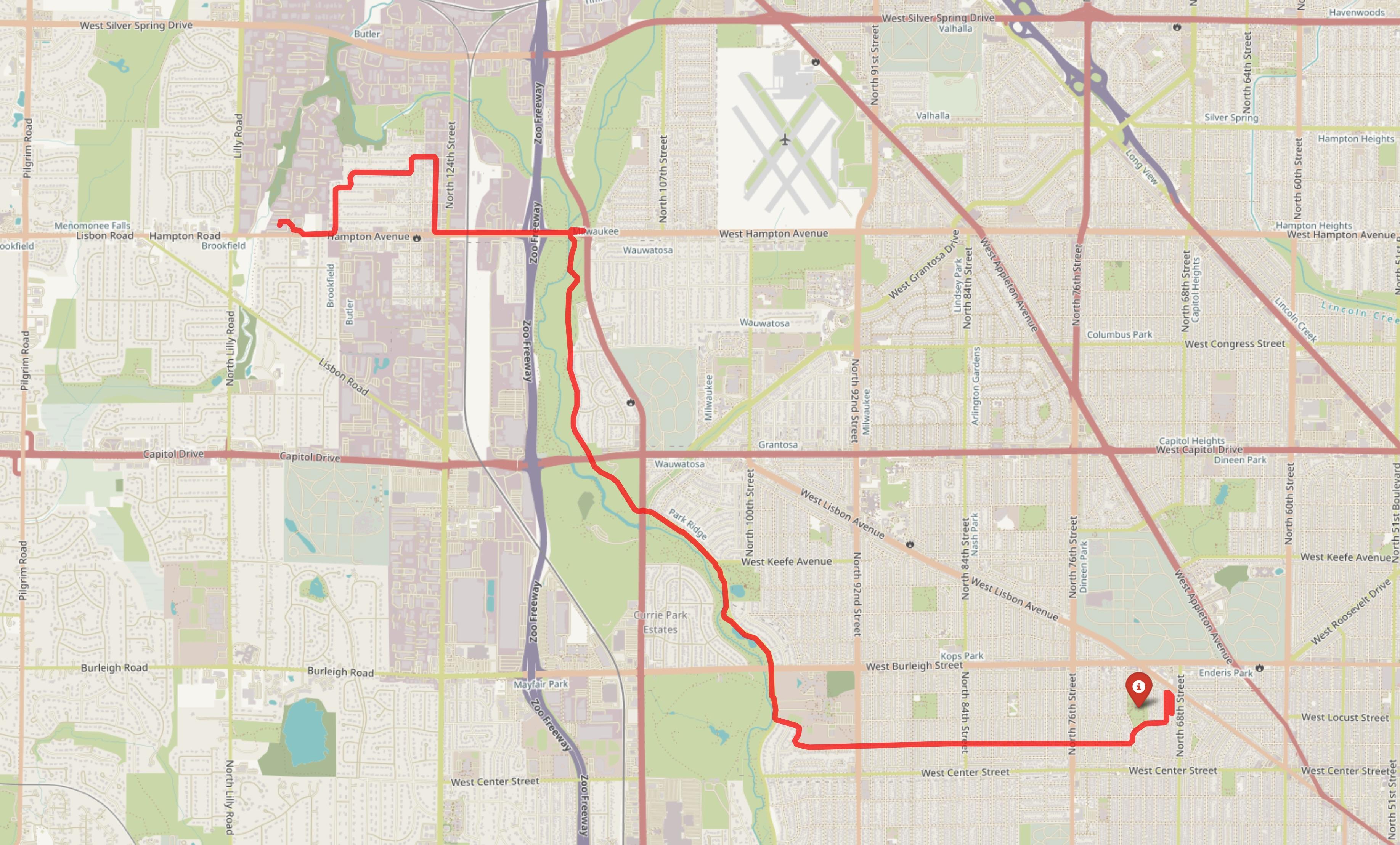 I did a 21 mile bike ride today. Along the way I saw a turkey, found a good pair of scissors, discovered Hidden Lake, and stopped to see Mama Rosa at Firefly Grove Park in Wauwatosa.