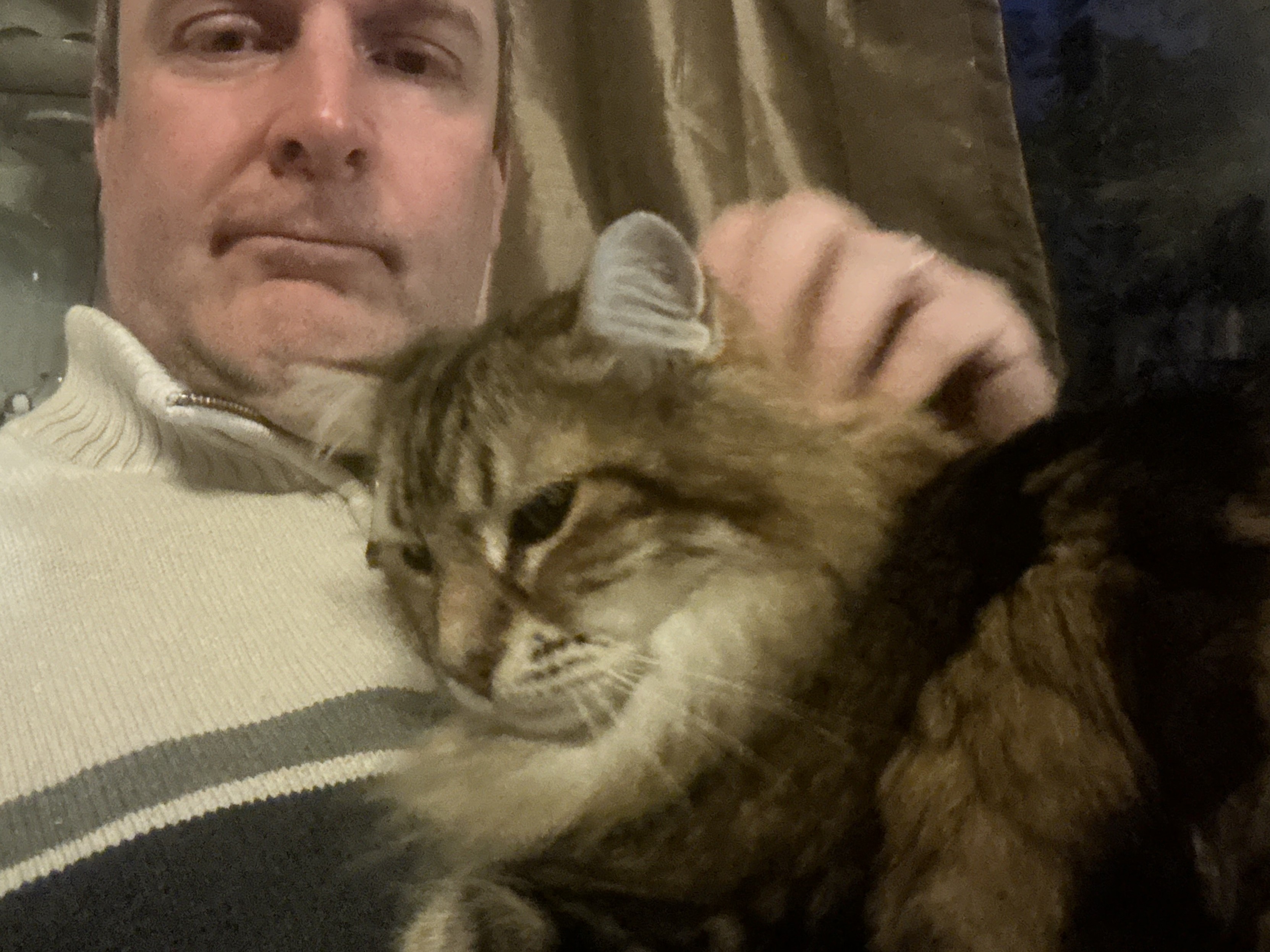 All he wants to do in the morning between the time I eat breakfast and head out the door is cuddle and purr and meow chat.