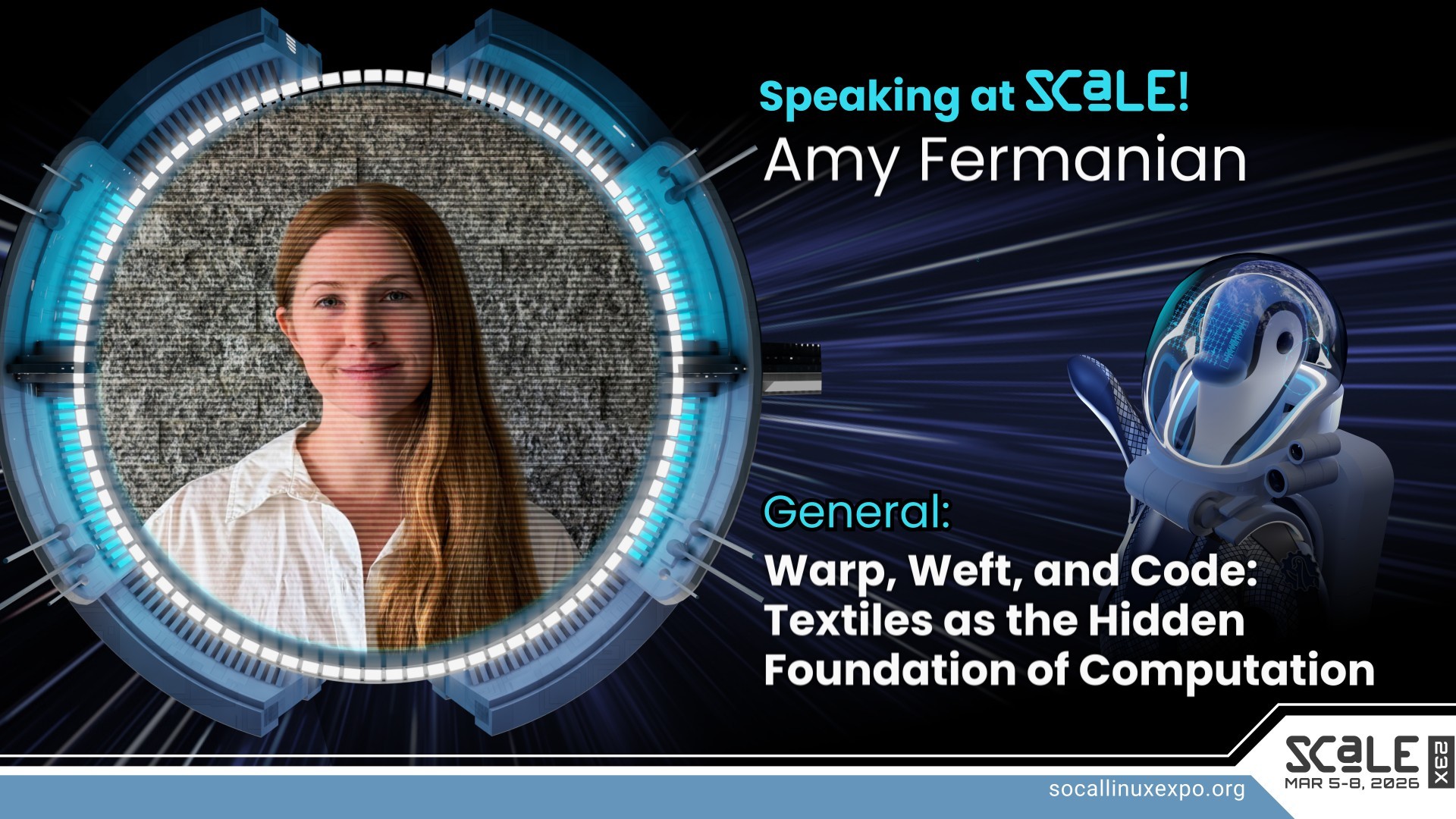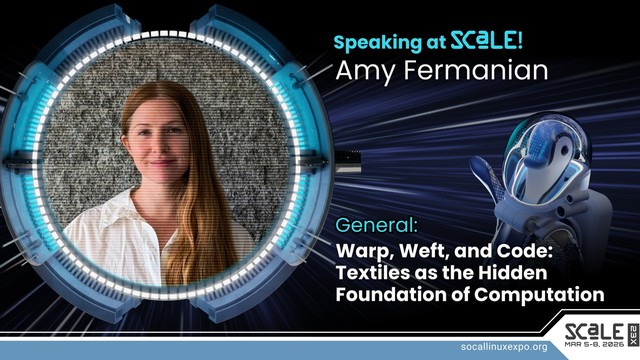 Amy Fermanian will speak on 'Warp, Weft, and Code: Textiles as the Hidden Foundation of Computation' as part of our General track at SCaLE 23x. Full details: https://www.socallinuxexpo.org/scale/23x