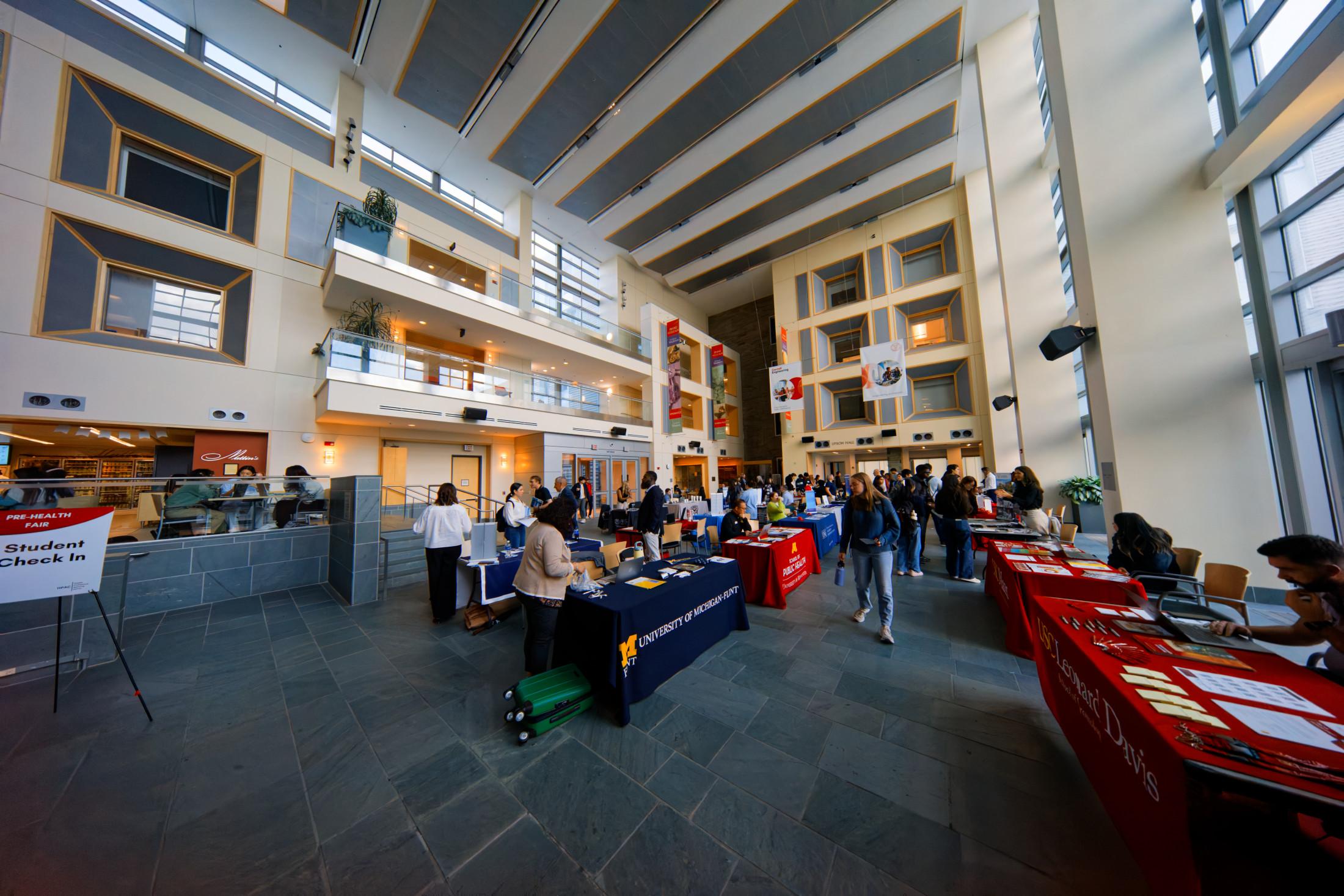 Recruiting event in the big atrium at Duffield Hall