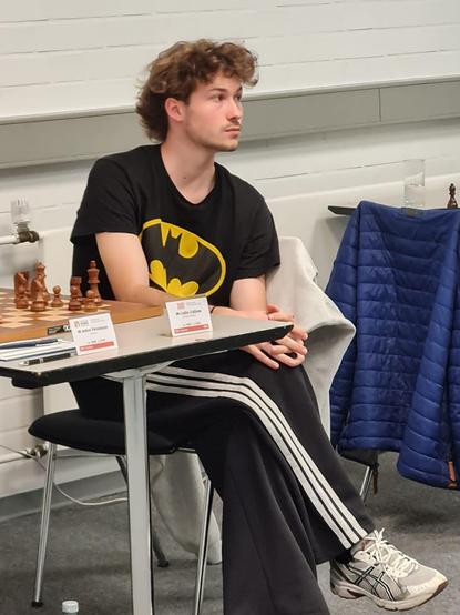 Floryan Eugene gewinnt durch einen Figureneinsteller seines Gegenübers auch die Nachmittagsrunde und macht damit heute 100%. Um eine IM-Norm spielt er hier nicht, den Titel trägt er nämlich schon. Stattdessen greift er die 2500er ELO Marke an und bewegt sich gerade in ganz großen Schritten auf eben diese zu. #dlm25