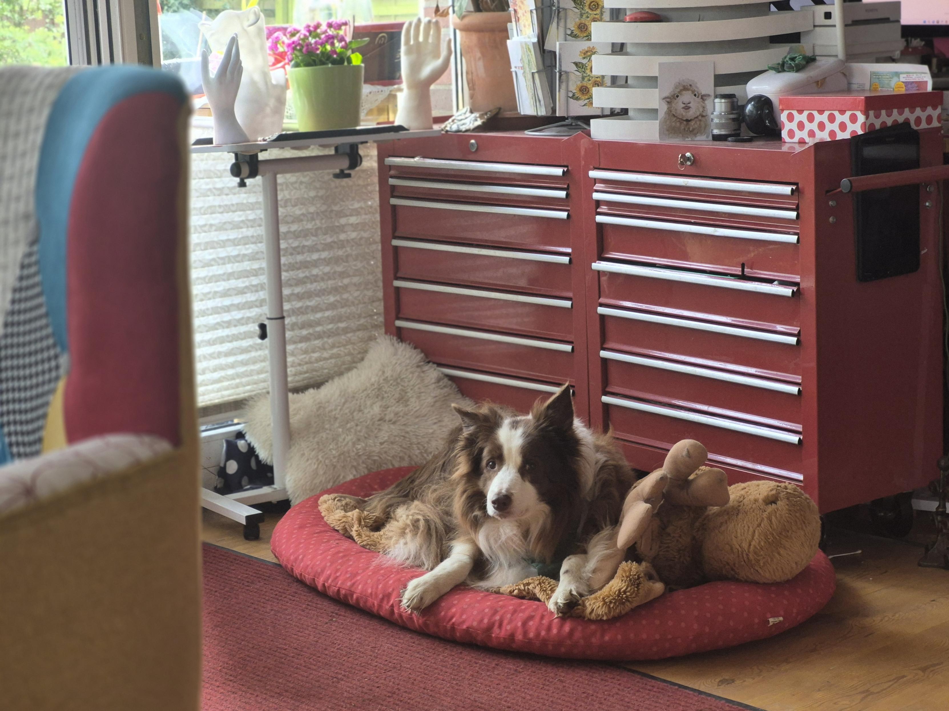 Verstärkung für Frau #Atelierhütehund: heute mit Amy.