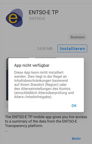 Entso-E energy monitor not able to install via applounge in EOS