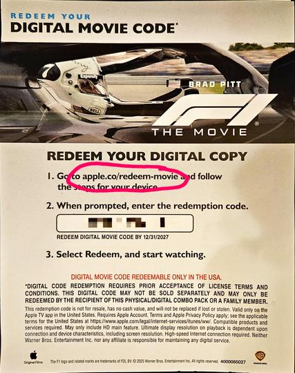 Don't buy the movies "#F1" or "#Greenland" on #4KUHD if you're not bought into Apple TV.