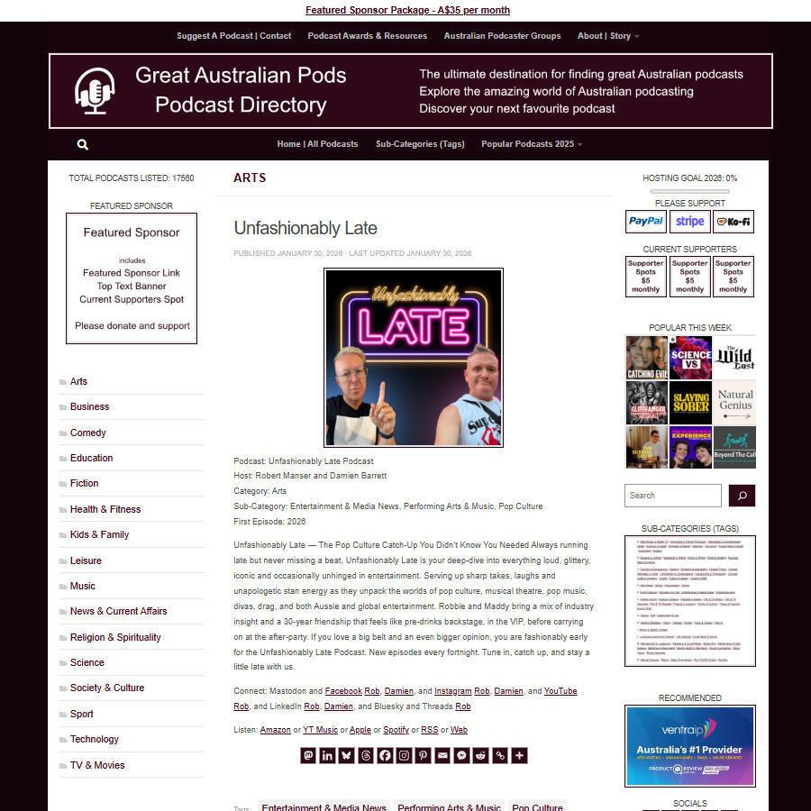 Great Australian Pods Podcast Directory: https://www.greataustralianpods.com/unfashionably-late/