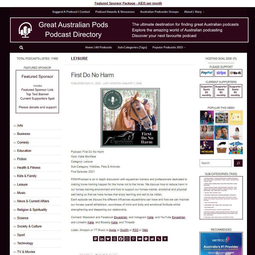 Great Australian Pods Podcast Directory: https://www.greataustralianpods.com/first-do-no-harm/
