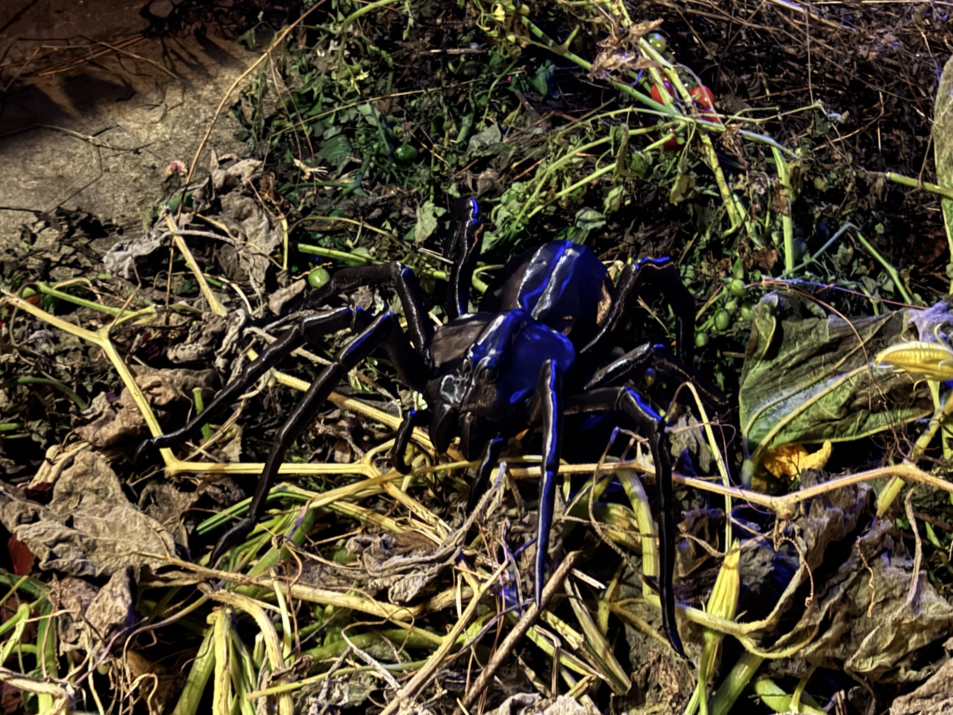 Oh, right. Also, the giant 36" spider I finished #3dprinting in the nick of time, on the porch on some dead tomato plants from the garden. #halloween