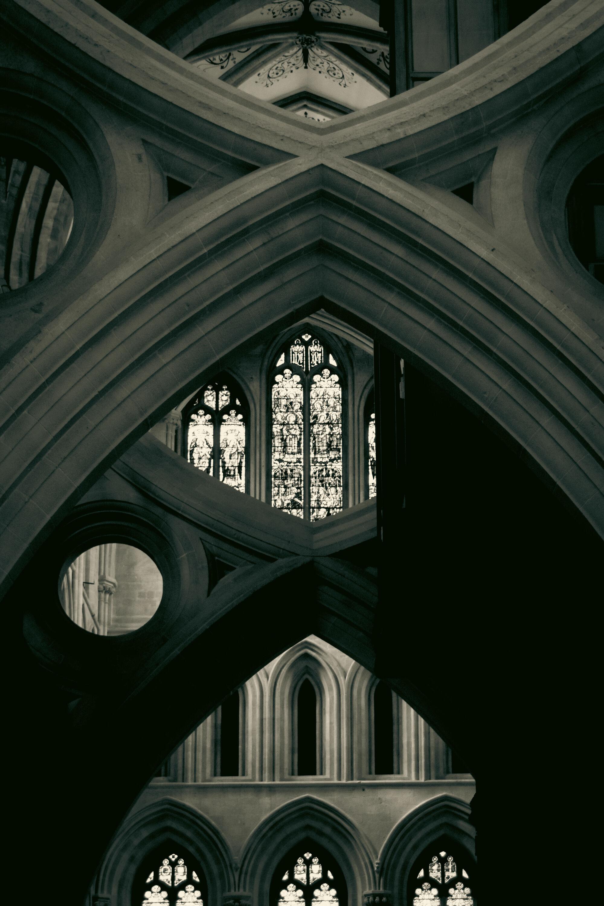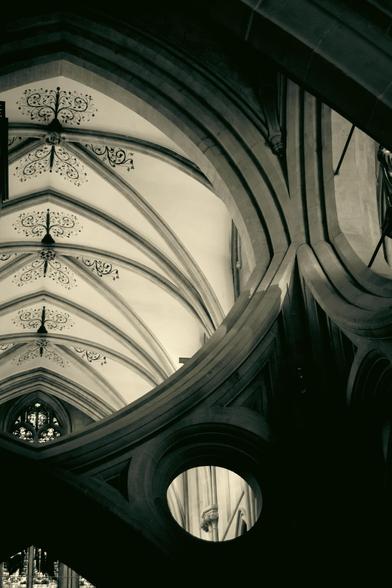 Scissor arches and vaulted ceiling, Wells Cathedral, Somerset, April 2025