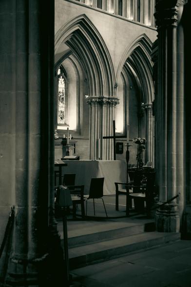 Side alter in south transept, Wells Cathedral, Somerset, April 2025