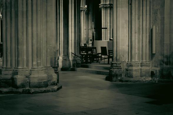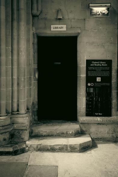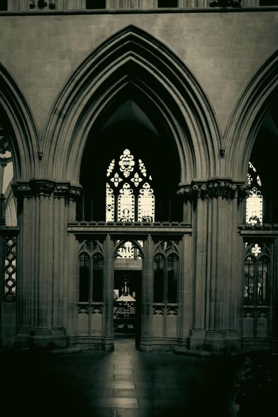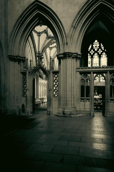Passage leading out of the Chapter House, Wells Cathedral, Somerset, April 2025