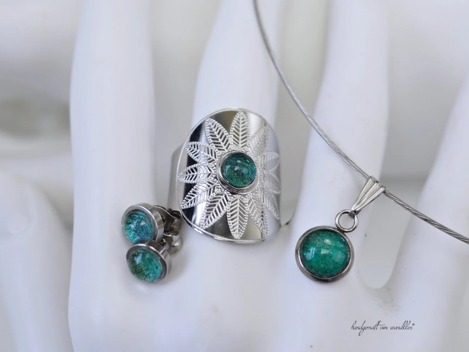 Galaktisch beliebt und jetzt wieder ein paar im Lager: von den Edelstahl-Schätzchen mit handgemalten #wandklexschmuck Galaxien sind wieder pro Ringmodell 5 Stück verfügbar (als Set oder Einzeln zu haben, Farbe wählbar, denn wird erst on demand montiert - auf #fediArt #mastoArt #creativeToots #artjewellery