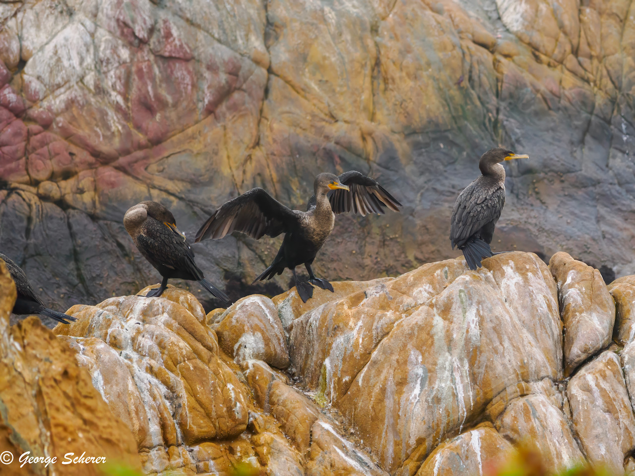 Three Double-crested Cormorants taking a break from fishing. Moonstone Beach, Cambria, California, USA. OM System OM-1 M.Zuiko 300mm F4 MC14. #moonstonebeach #cambria #cormorant