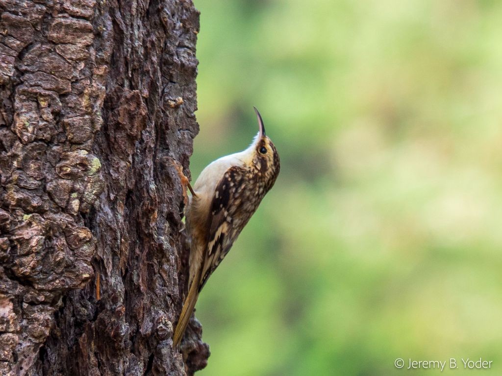A swift little brown creeper, Certhia americana, on a cloudy San Juan Island morning