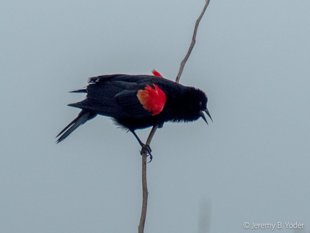 Red-winged blackbird, Agelaius phoeniceus, screaming at the world, because sometimes that's what you have to do
