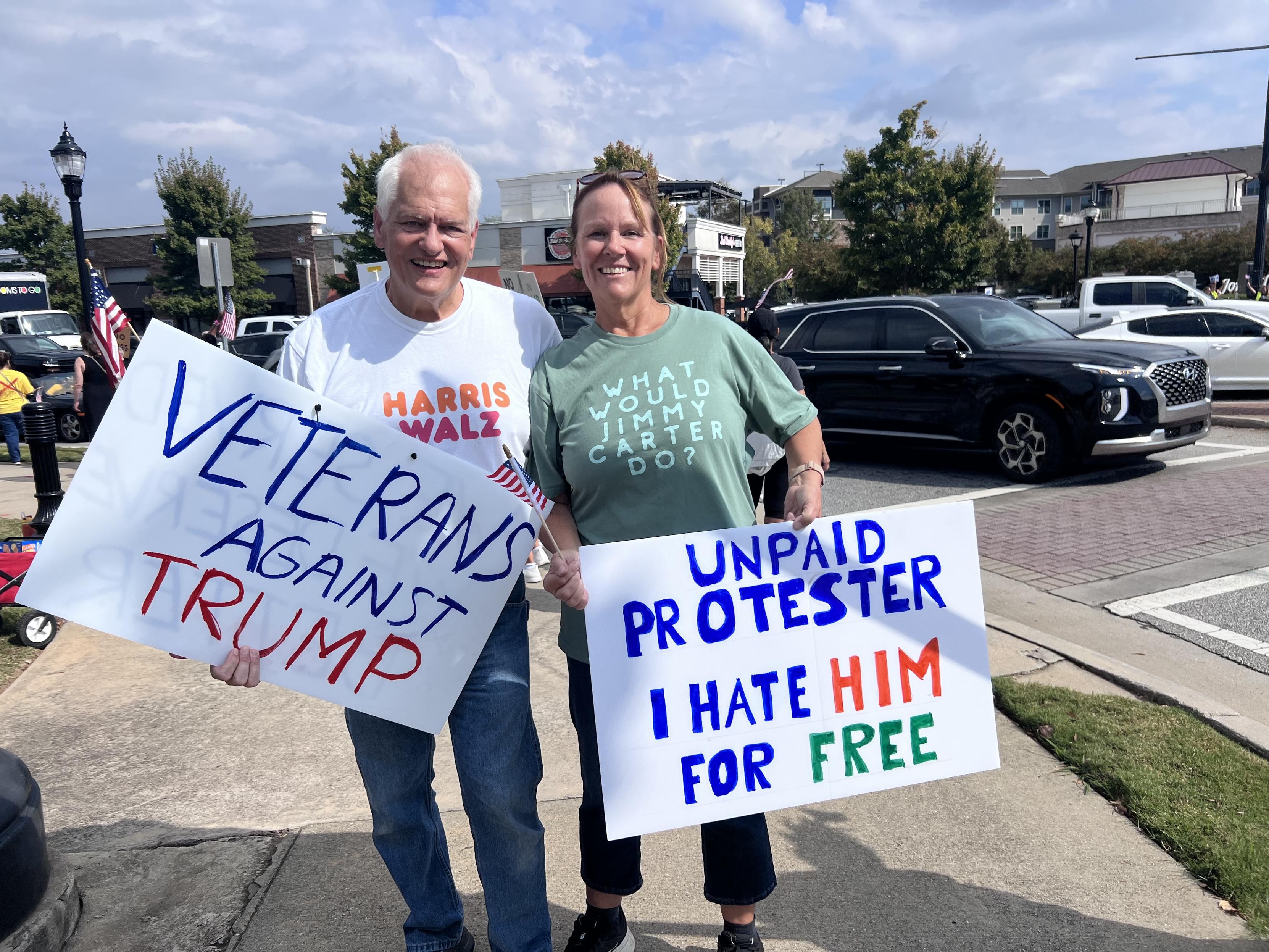 Collette and I at the #NoKings Rally in Smyrna GA. There were about 400 people at this rally (just a guess, could have been a lot more). Lot's of thumbs up and honking from the cars driving by. A few people , apparently with damaged index fingers, seemed to indicate we were # 1. I would say about 50% of the cars were supportive, 45% ambivalent, and 5% , were demonstrably not fans. We were there …