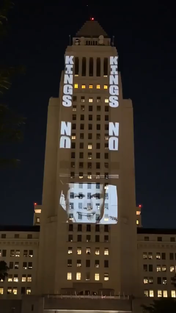 In Downtown L.A., the NO KINGS rally last night, Saturday. Courtesy of Bill Campa.