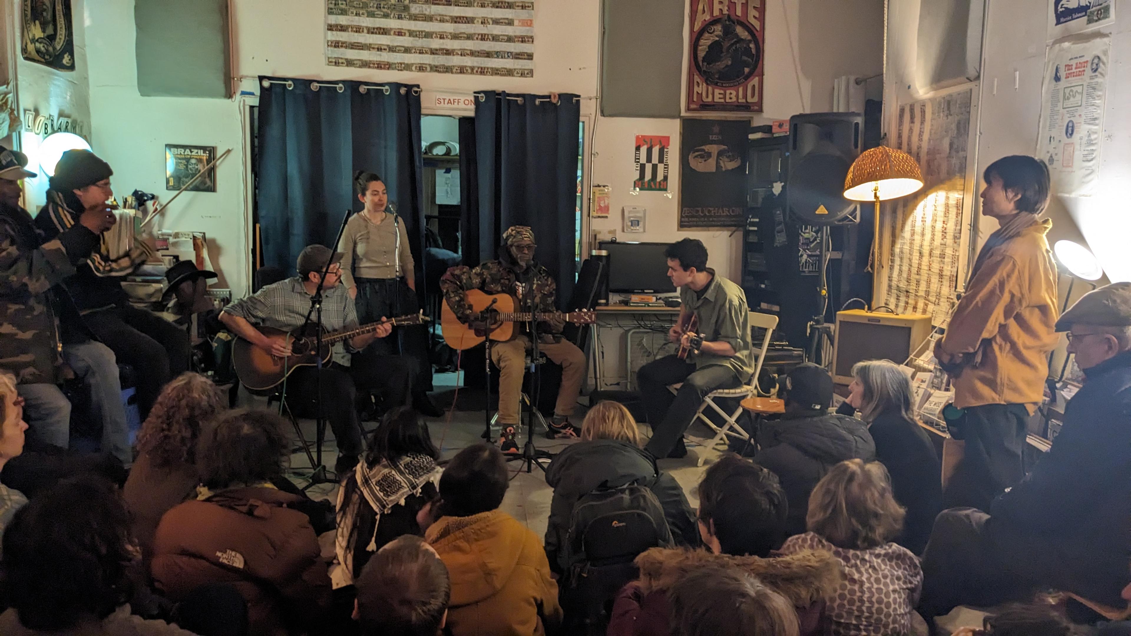 cozy friday at the p.i.t. with the 75 dollar bill little big band, sneaking from drone to glowing chiming pulse (with an accidental late set bass drop) (couldn't squeeze talice into the photo) & mauritanian folk-poet ibrahima sow, heavy stories & floating guitar (sometimes in translation). #brooklyn #nyc