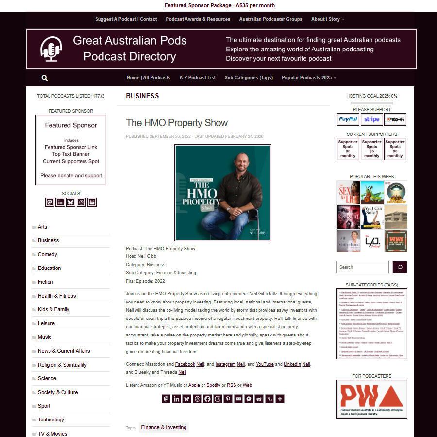 Great Australian Pods Podcast Directory: https://www.greataustralianpods.com/hmo-property-show/