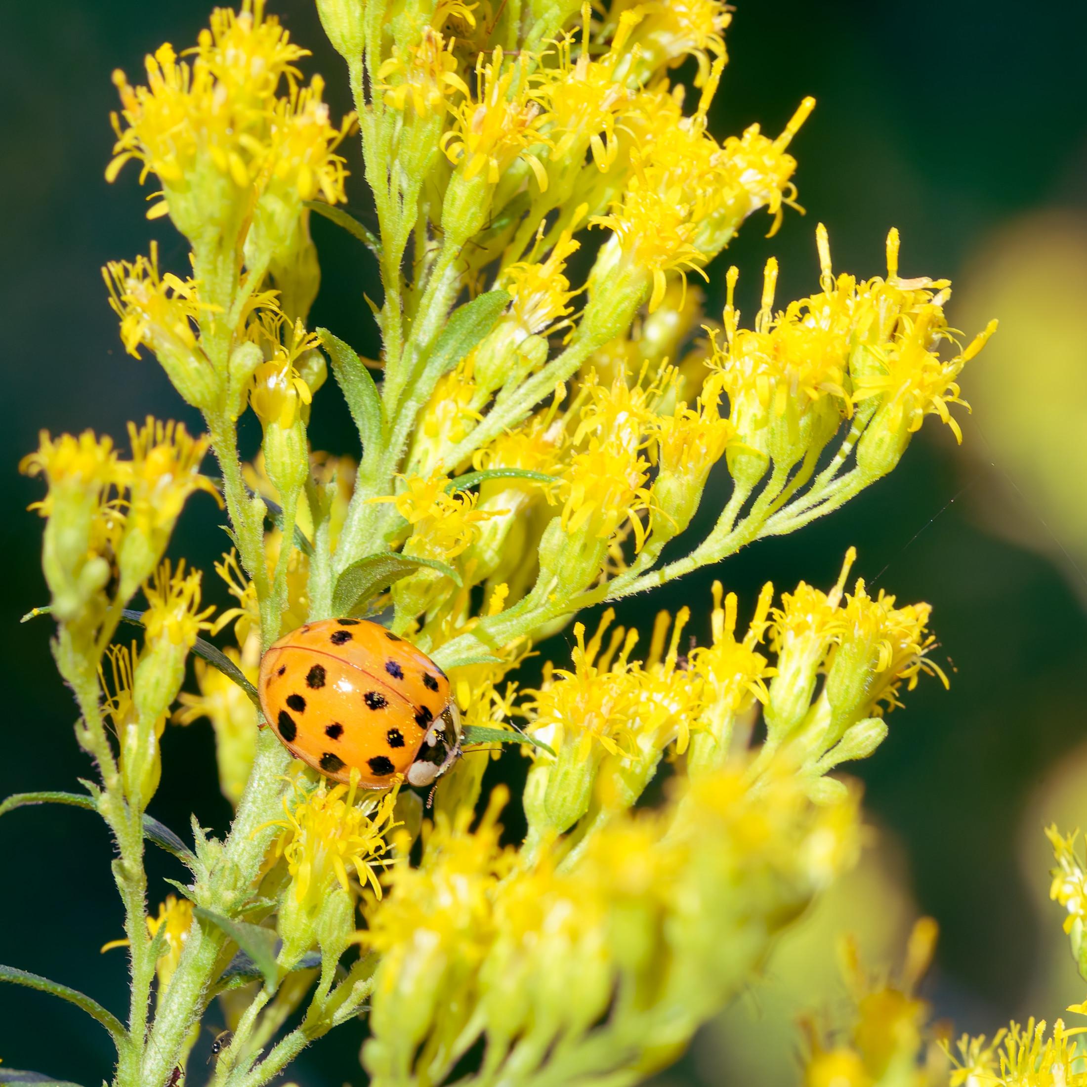 Here's a ladybug on a Goldenrod, look really close and you'll see little yellow pollen spots on it!