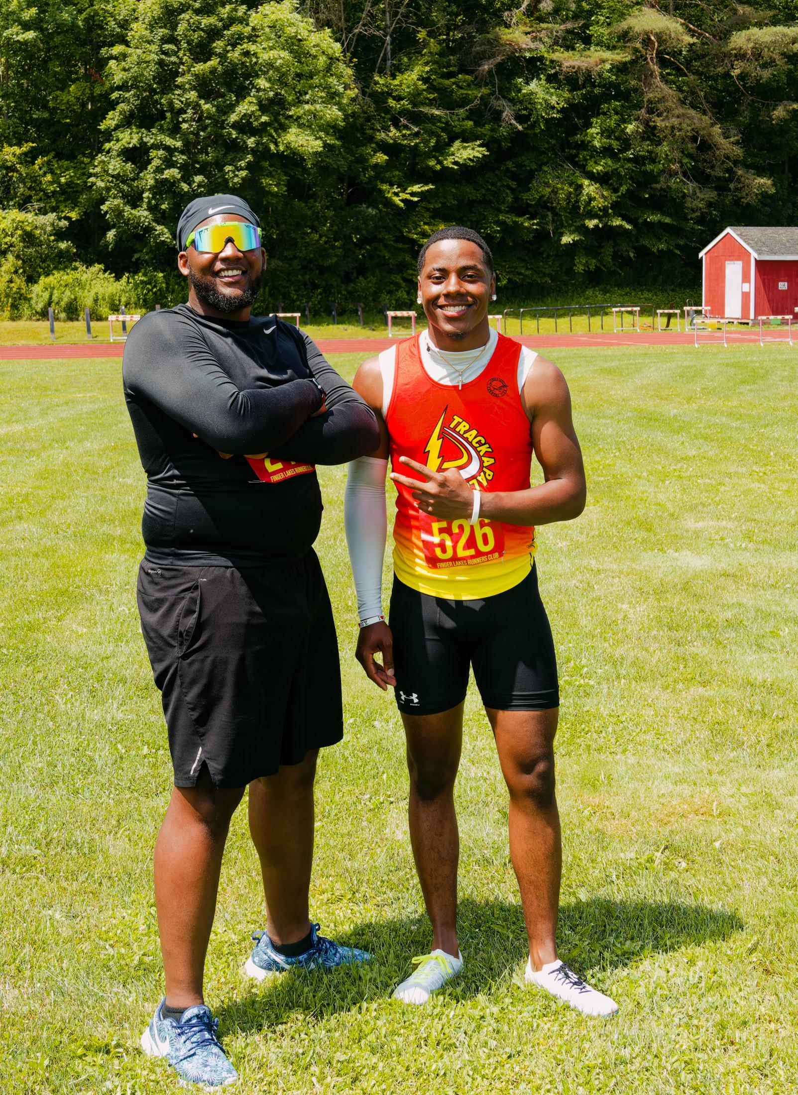 Toddler moves towards an outreached hand in the first heat of the 100 meter race (FLRC runs from slow to fast so that the timers will know what they're doing when it counts)
