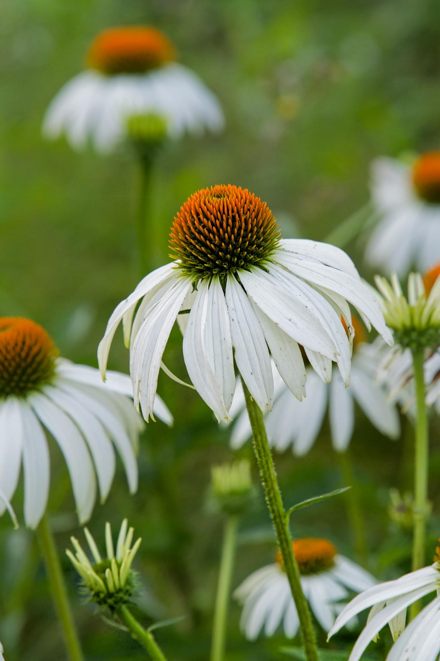 My wife tells me that these white Echinacea flowers are less hardy than the purple ones and that if you grow them together the purples will crowd the whites out