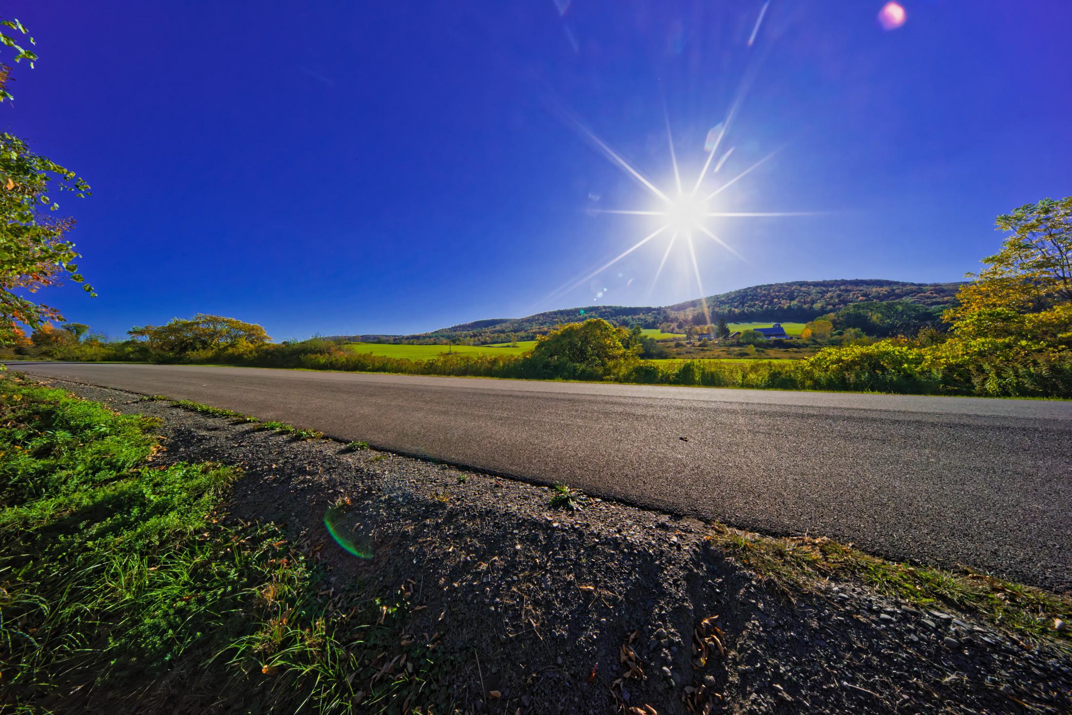 This is what you get when you take a picture of the sun with the Laowa 9mm -- sunstars! Here's a road west of Dryden Lake