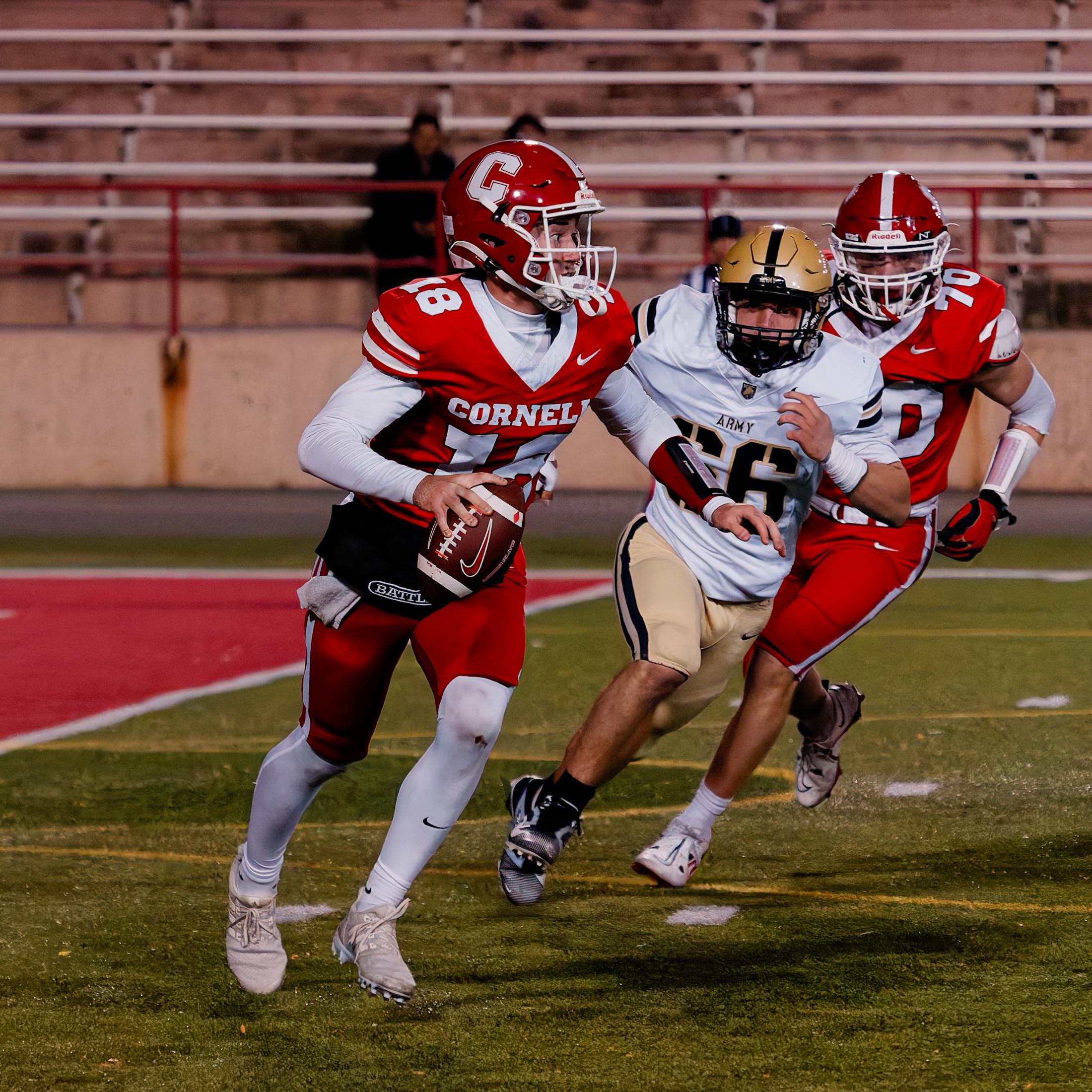 The second half was an entirely different game where Cornell shut out Navy and Cornell's № 89 Cooper Patterson scored a touchdown despite № 32 T.J. Silvernale of the Midshipmen.