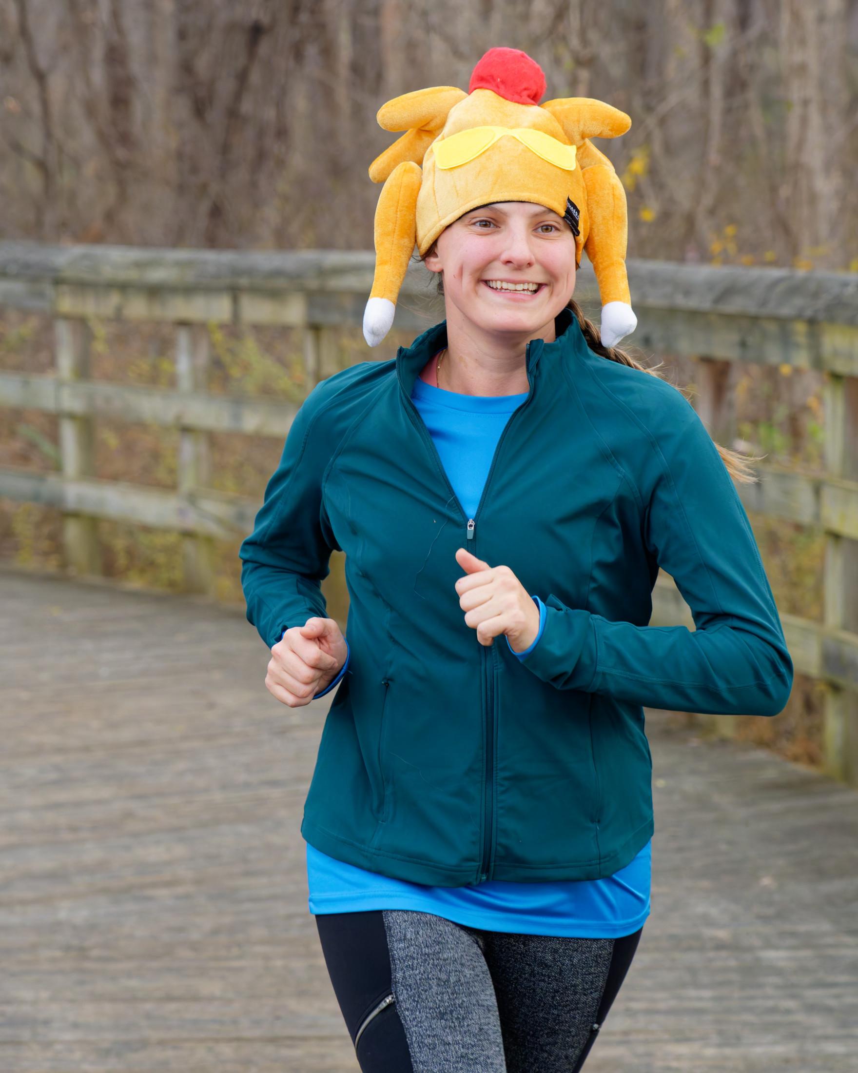 Turkey Trot runner with funny hat and a hidden bib