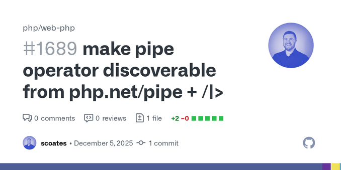 I'm not 100% sure this is the right way, but I sure didn't have “Contribute to the php.net web site" on my 2025 bingo card, and yet…