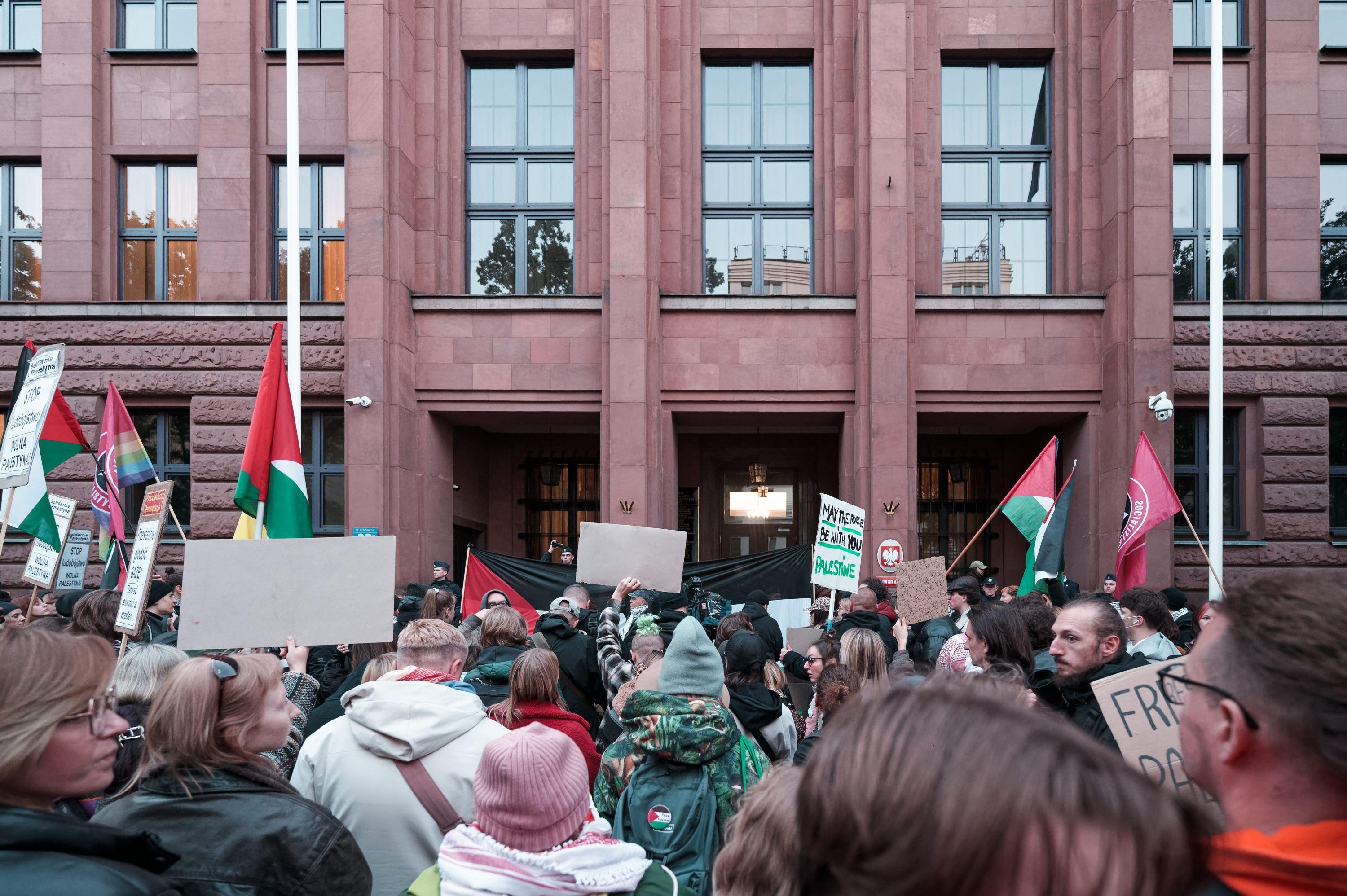 Urgent demonstration in solidarity with Global Sumud Flotilla in front the Ministry of Foreign Affairs (MSZ) in Warsaw, Poland, 2 October 2025.