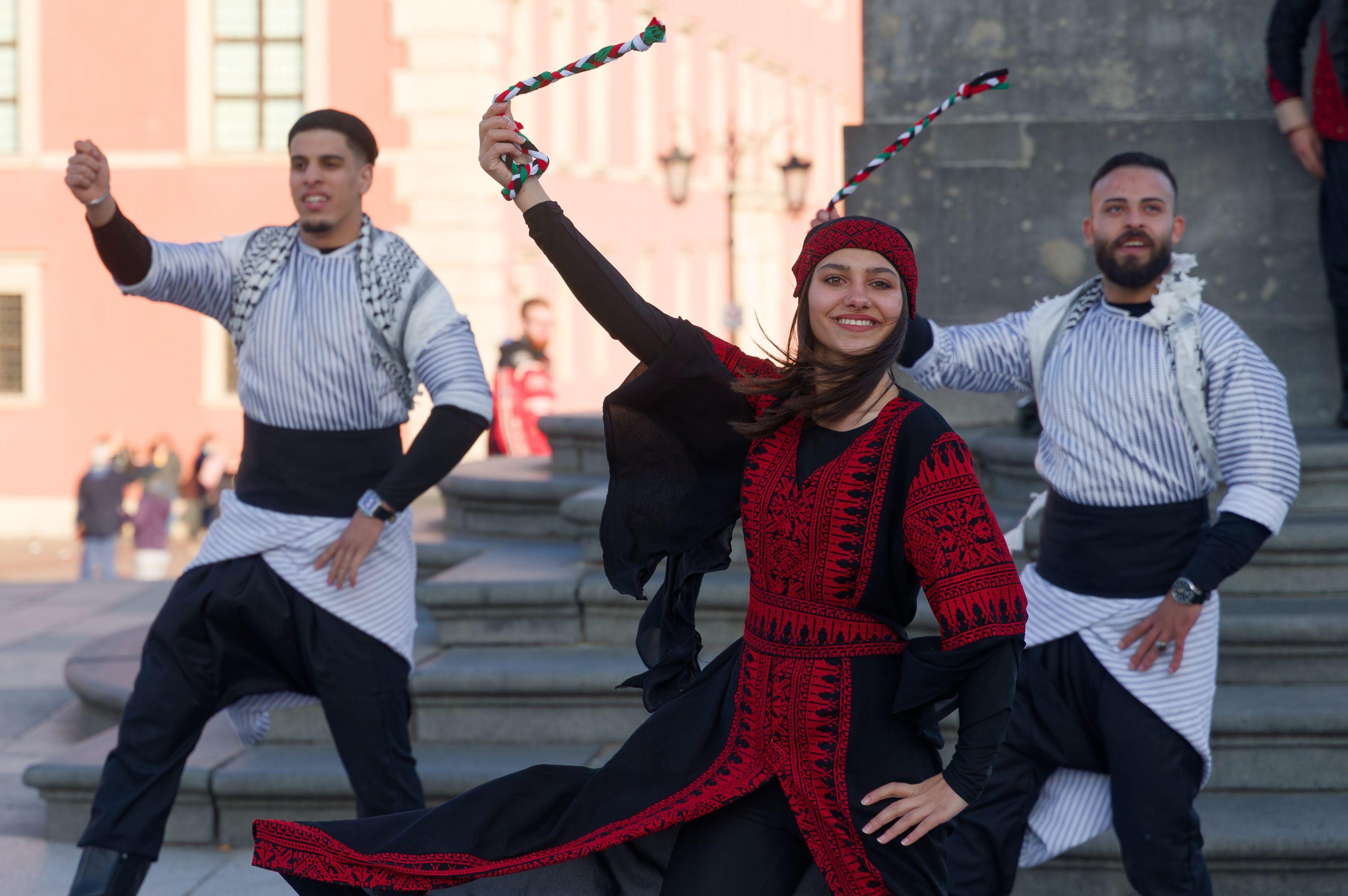 Haweya Band from Nablus, Palestine performing traditional Dabke at the Castle Square in Warsaw, 4 October 2025