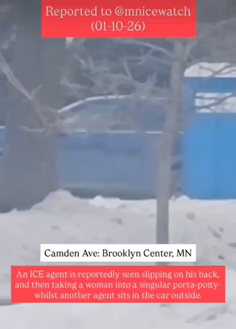 Male fascist paramilitary invader follows female abductee into port-a-potty (01/10/26 - Brooklyn Center, MN)