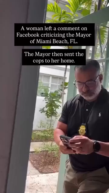 Someone left a comment on Facebook criticizing the Mayor of Miami Beach, FL. The Mayor of Miami Beach then sent the cops to a suspect's home.