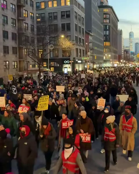 Thousands of protesters marching in New York and shutting down Manhattan in solidarity with the general strike in Minnesota (01/23/26)