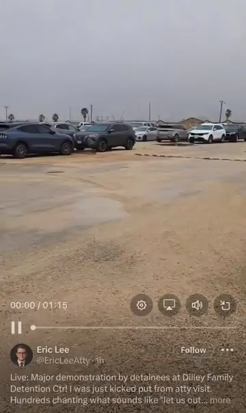 Major demonstration underway at the Dilley, TX Family Detention Ctr (Concentration camp for kids). Children screaming and chanting can be heard from outside (1/24/26)