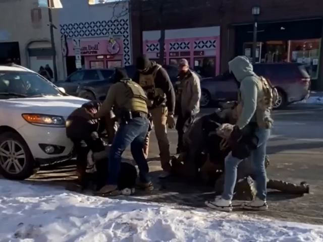 Robby Roadsteamer arrested by fascist paramilitary invaders at the Whipple Federal building (Minneapolis, MN - 1/12/26)