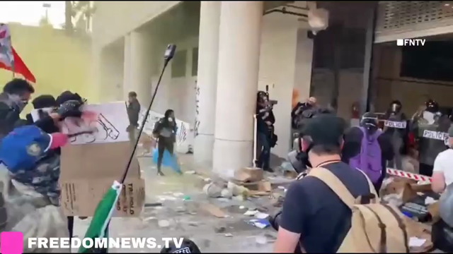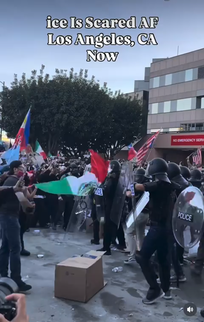 Fascist paramilitary invaders using a LRAD sound weapon on peaceful demonstrators outside of the downtown Los Angeles ICE detention facility (12/30/25)