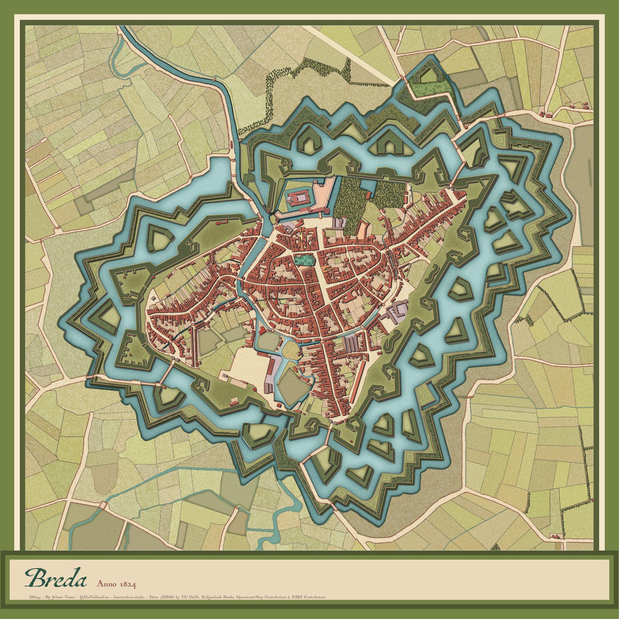 De kaart van Breda is gemaakt op basis van kadaster data uit 1824.