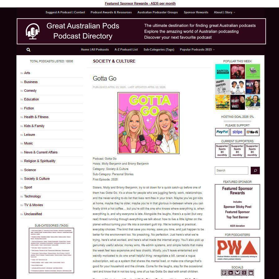 Great Australian Pods Podcast Directory: https://www.greataustralianpods.com/gotta-go/