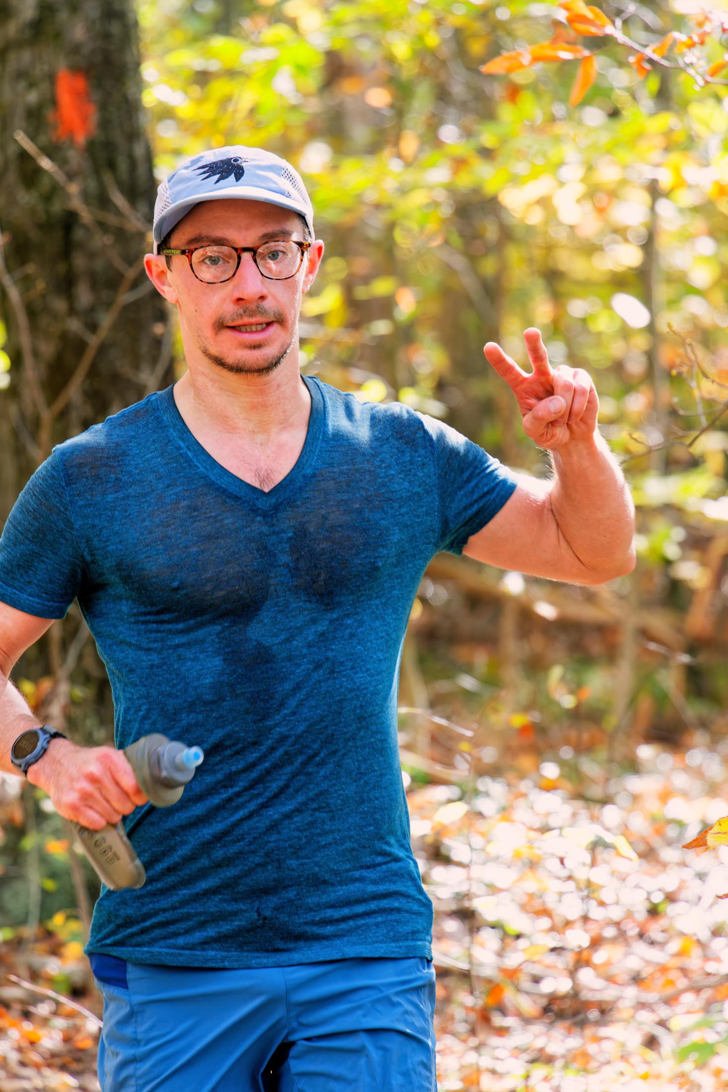 Happy runner at the Thom B Trail Race at Hammond Hill State Forest