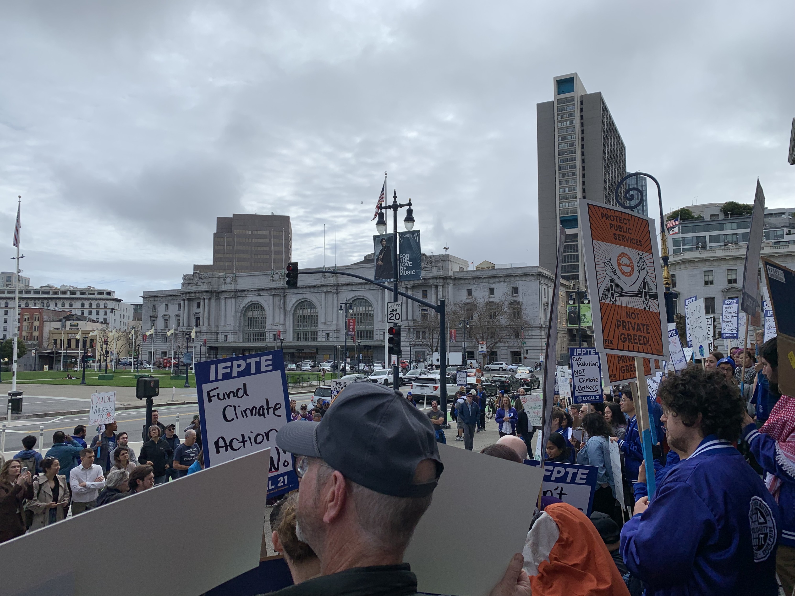 At city hall to protest Denim Dan Lurie’s SF Environment budget cuts. But the mayor isn’t here because he’s announcing a tax cut for rich real estate investors. Cutting revenue that could restore his SF Environment cuts over 10x over. #sfpol