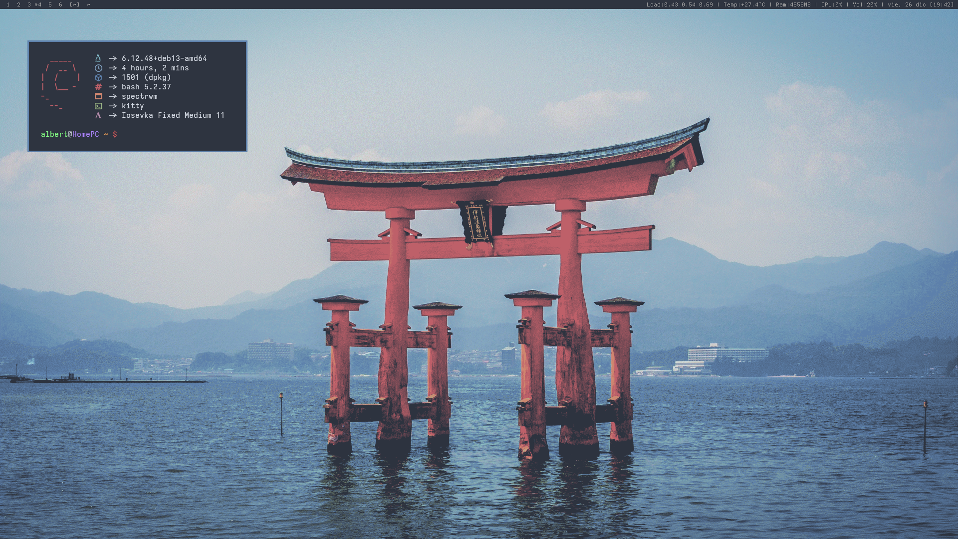 Despido este 2025 con este escritorio.He deambulado por varios manejadores de ventanas pero me quedo con #spectrwm por su fluidez, sencillez y minimalismo.#navidad #2025 #linux