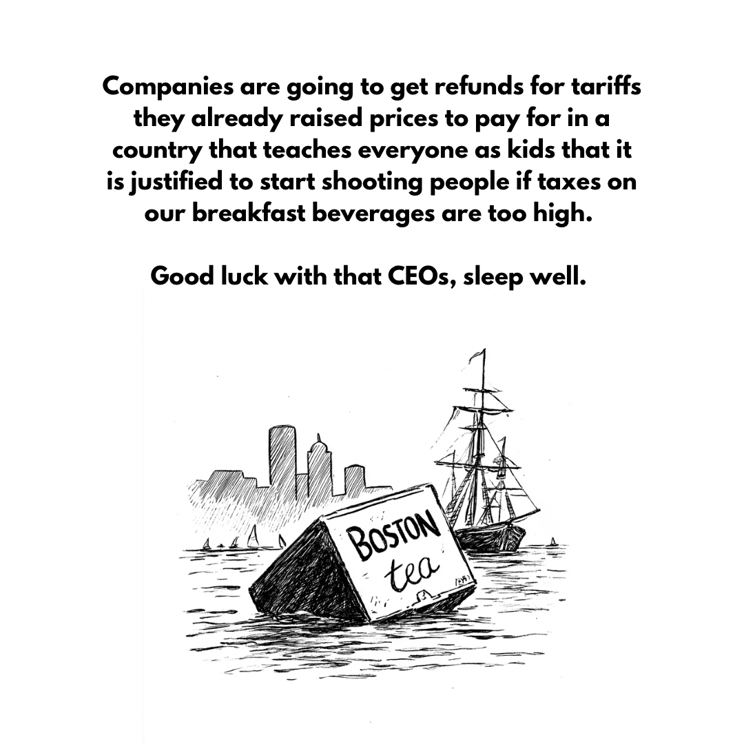 The practical implications of abolishing the current tariffs and replacing them with the overall 10% tariff will be interesting, will all made trade deals change? Or renegotiated? Chaos. De-invest from the US, move to Europe.
