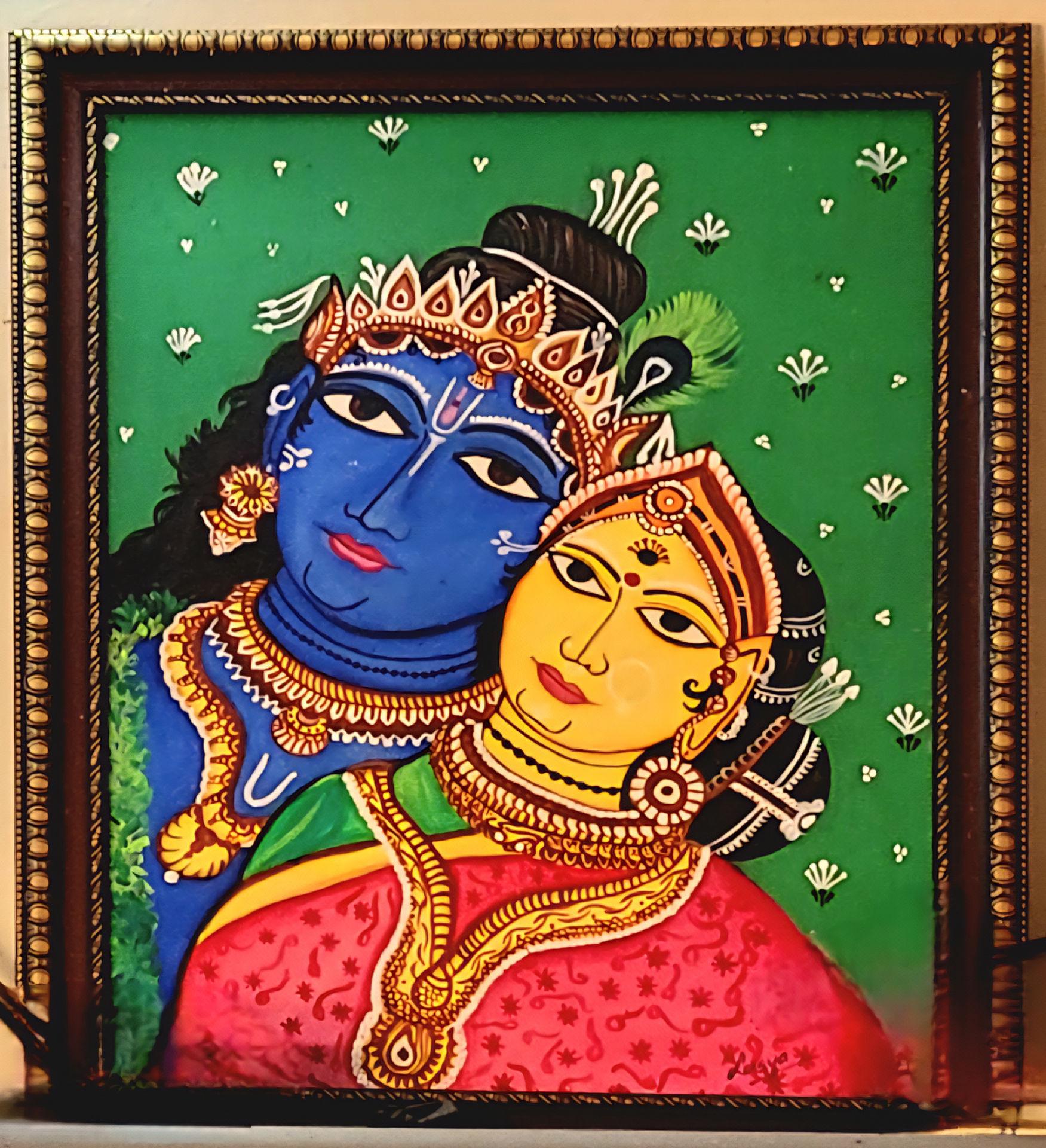 Jan. 9, 2025: A vibrant portrait of Krishna and his consort Rukmini. I found it stashed behind stuff on top of a storage closet at an office in #Udupi #Krishna Matha, #India.