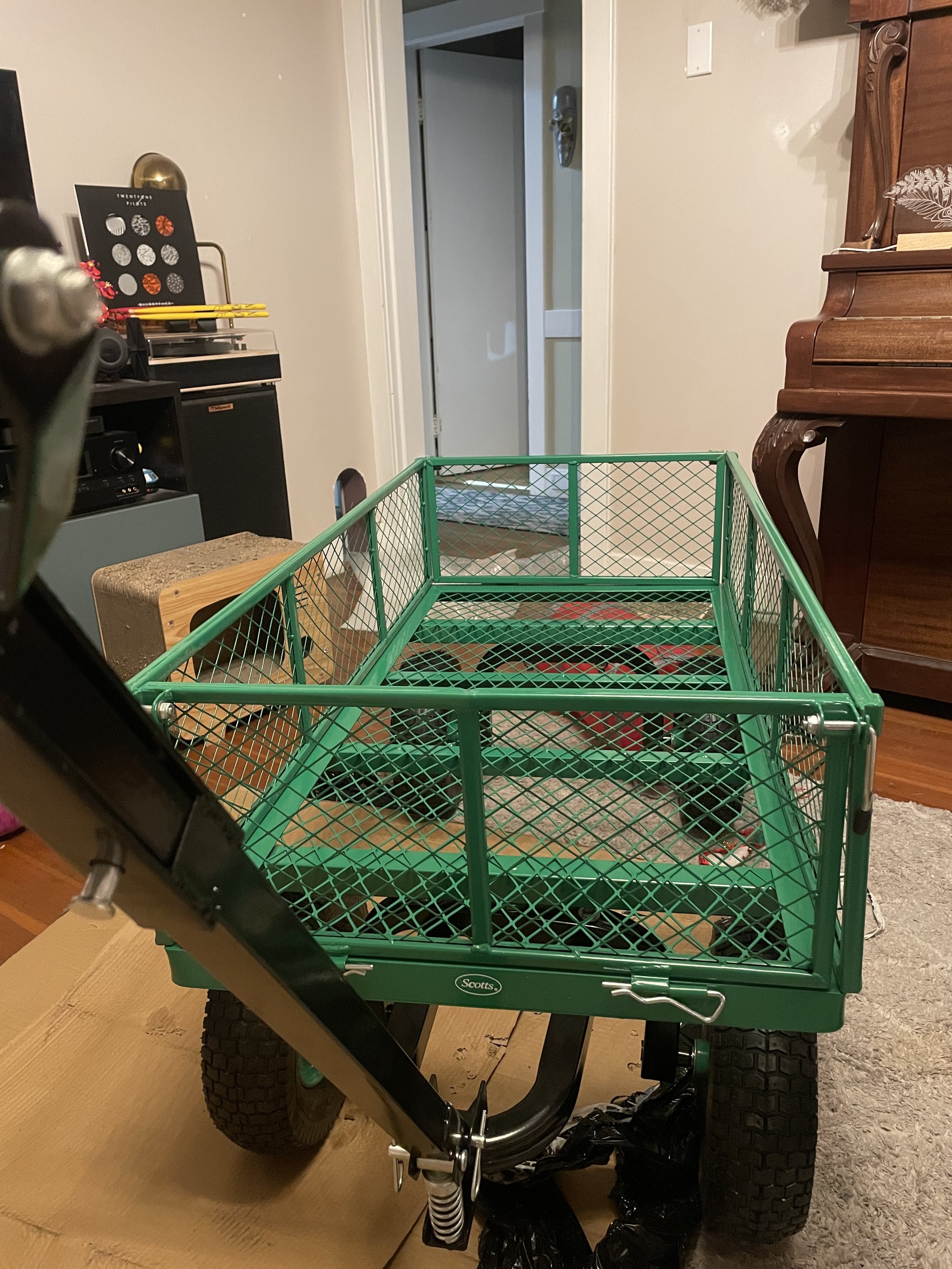 our previous (stolen) cart was able to unlock from the front and lift up to dump. This one... not... at least not by design. Instead I guess it will be a "tipping" cart.